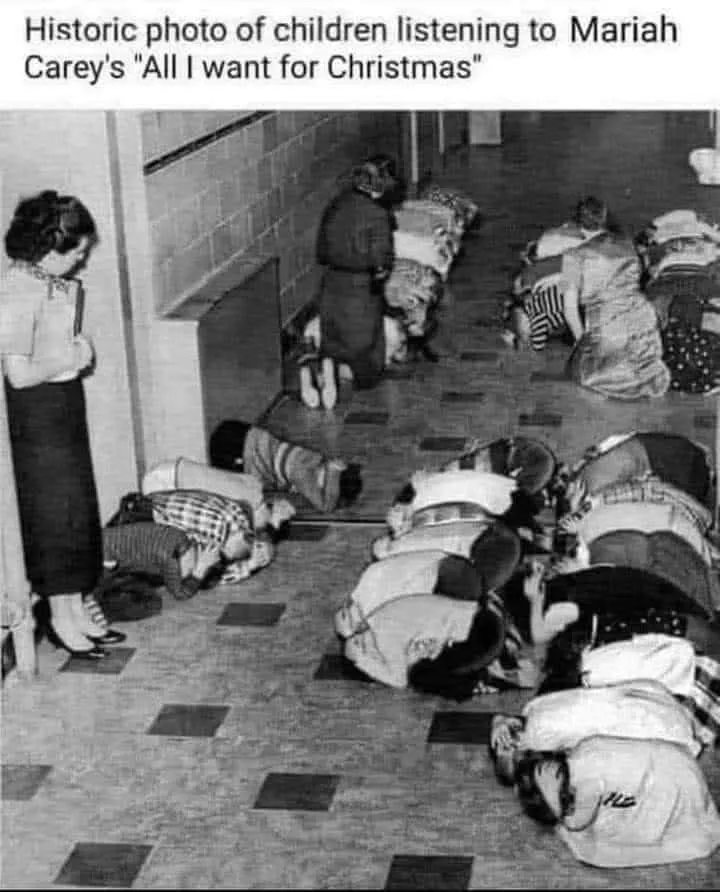 That's the 'put your head between your legs and kiss your ass goodbye' drills from nuke hysteria.The women are teachers and the only people I know who like that song are women.