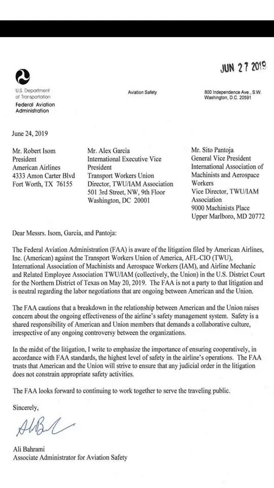 Almost the same letter we got at SWA about our "relationship" between management and the mechanics. All about the safety. The letter to us was much more severe. But the same intent.