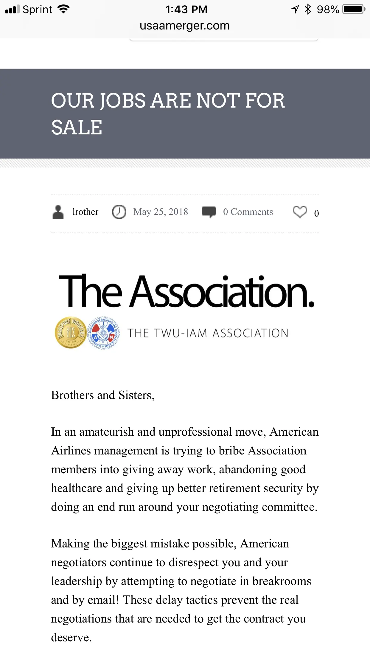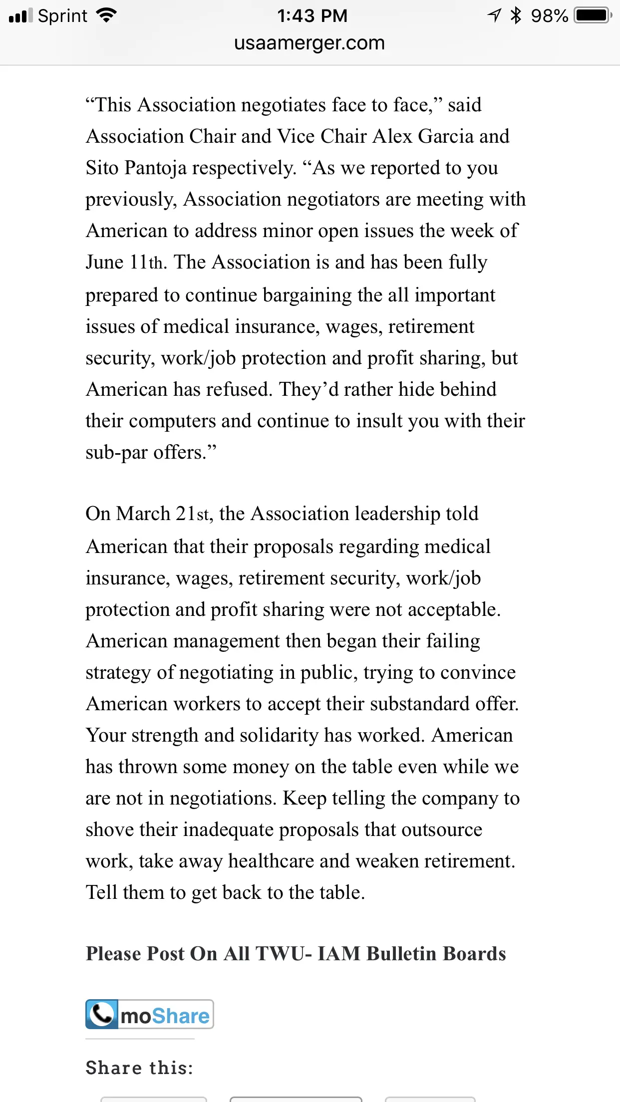 "In an effort to address those concerns, this week we proactively proposed adjustments to our March comprehensive to the Association. These changes are intended to further increase wages, guarantee we continue to insource more maintenance and fleet service work than anyone else in the industry, and ensure that everyone who has a job today will continue to have a job at their station in their BASIC classification."