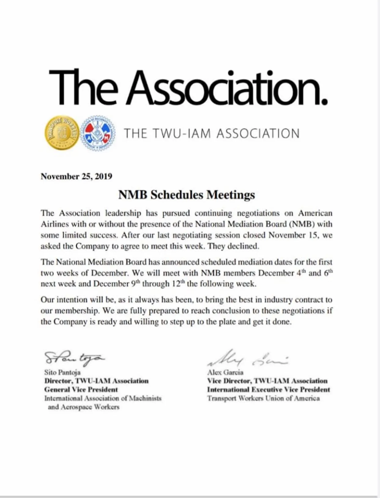 Even more... They claim the NMB made a determination and it was not an option...---Bull Shite. They could have done the loyal thing and had a election between the TWU and the IAM just like all the other unionized groups did (Pilots and F/A's). And as a matter of fact the NMB did not make any determination as they had "NO JURISDICTION" as we were all told by the Lead Supervisor at The NMB for those that took the time to call and ask them personally. The NMB DID NOT establish the asso. as they indicate above. The TWU and IAM filed with the NMB to be a combined union representing all the current TWU and IAM members as the new "Employee Asso." They just simply filed for it. And since the NMB had "NO JURISDICTION" over the matter, and the two unions used the dues check off list from upteen years ago for the suppose approval of the membership as a back door and final push to get the NMB to buy into it, they did and the NMB simply certified it...