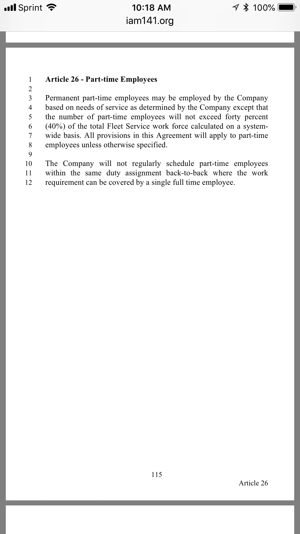 The part time question certainly puts the fleet contract in the lurch. That language will have to be gone over carefully.