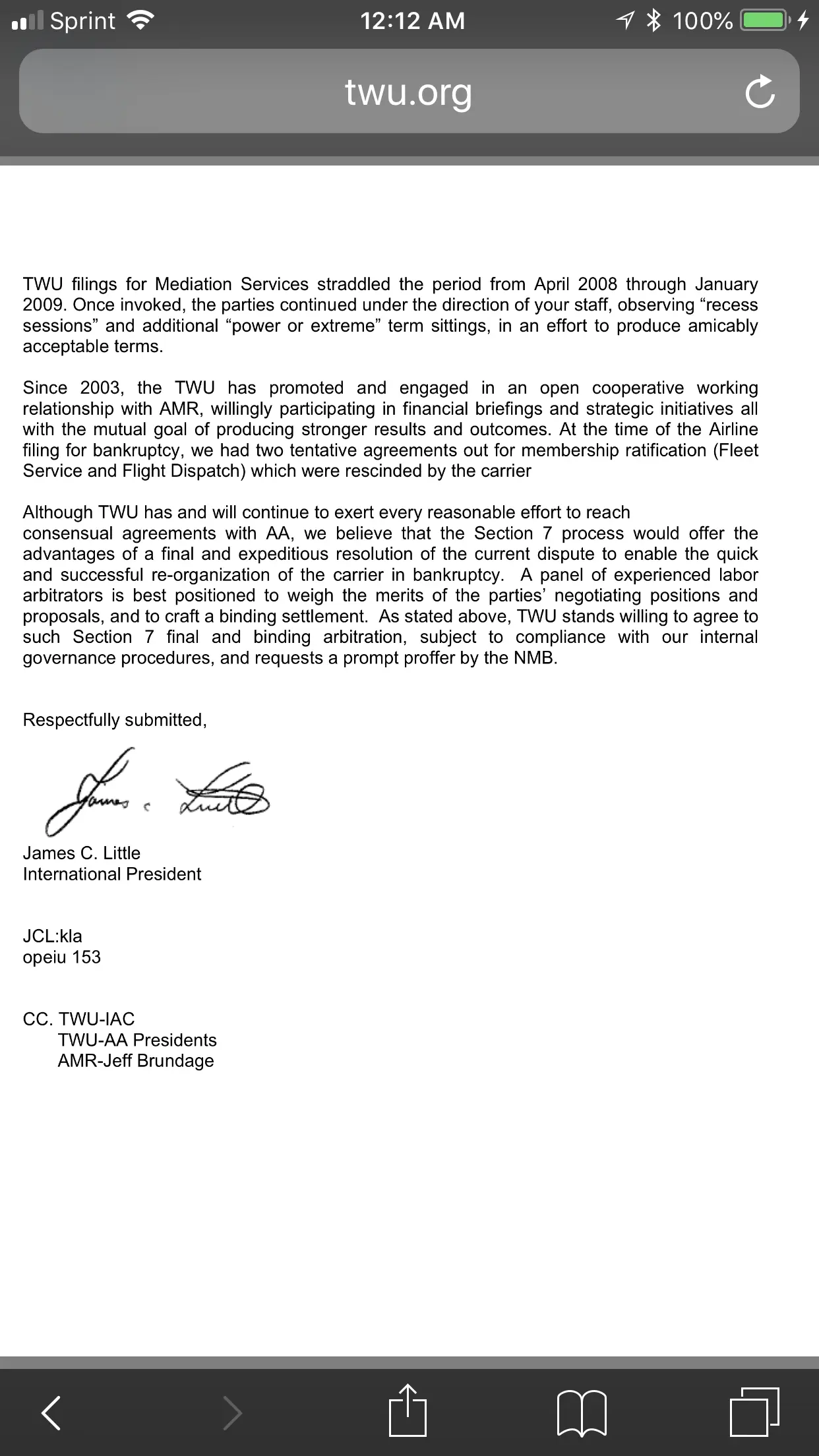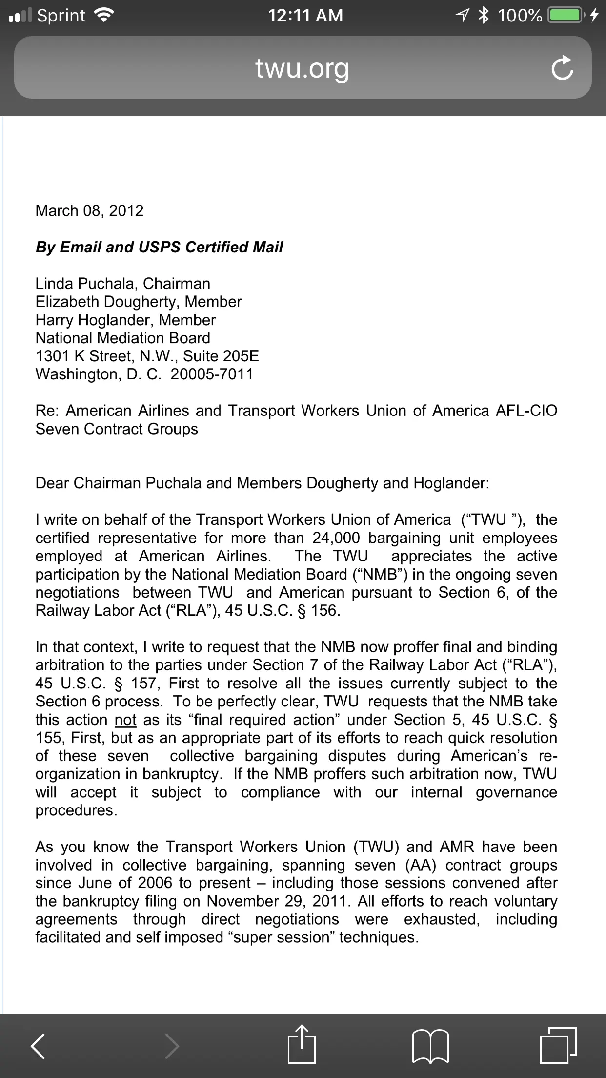 Thank you That is to go to an arbitrator to decide. Which was my point. And it was due to bankruptcy which just sux all the way around.Racer X. I think this letter could provide some insight into what NYer is talking about and what he went through? While no the NMB can’t force any vote, just by reading President Little’s summation they can make the process “frustrating” if they want.