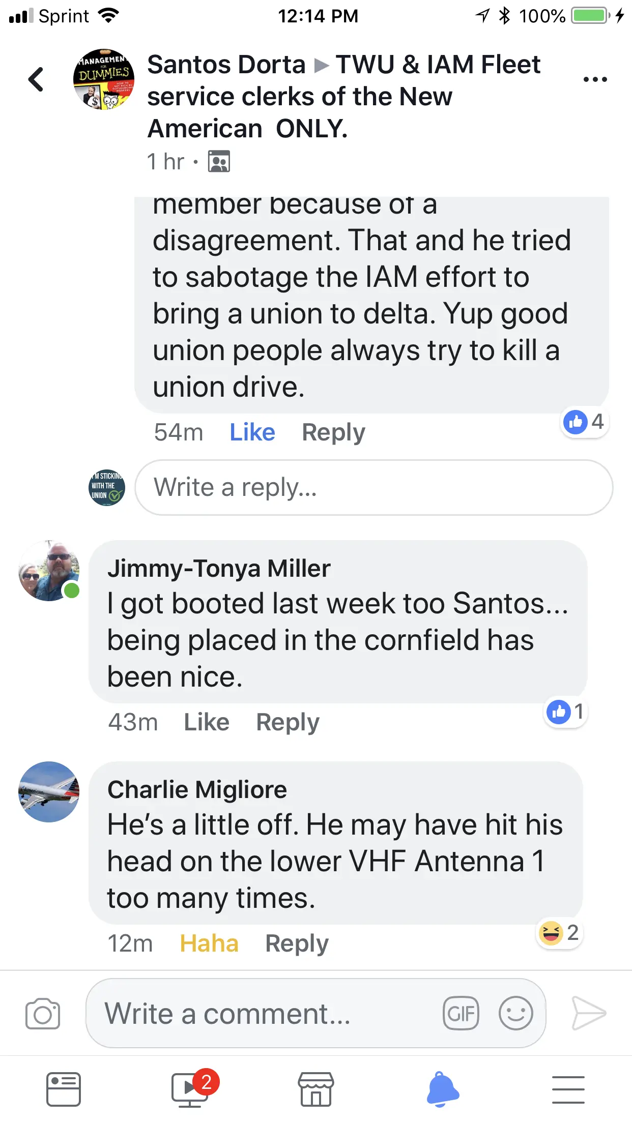 The company is fairly comfortable with the TWU contract it has right now. It's a cost saver for the company. It wants to continue Labor peace. The only one threatening anything is Mr Baskett and Mr Peterson who both wanted us to "Attack" the company, based on Gary's Blue Fairy video.