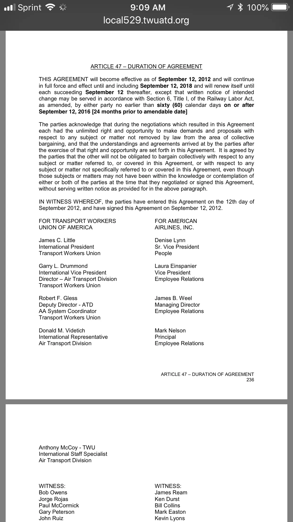 weez and charlie browns boy peterson may be in with management. Since his bizarre video ive had suspicions that he is with management. He was a 3 time management flunkie prior.I disagree we have 2 unions that are not very good at all. We are paying them hard earned money to represent us. There doing a piss poor job. They do not give the info most members want to know like what they proposed what the company proposal were not union officials going off on video. If you were paying for a service in your private life and they did not communicate with you and you felt they were not representeing you you would get rid of them. Maybe people wouldn’t dues object if they were getting there money’s worth. But to watch these clowns that are negotiating our contract is a joke. The company has glass we need professional negotiating for us. The last twu contract had very piss poor language in there . Don v sold us down the river. Conclusion since the union will not tell us what there proposal are I’ll assume that it is not very good. If the company really is going to make all those cuts why want the union actually show us what in there. In writing instead of pissing the company off by threats and the isom remarks I don’t like Parker are isom they turned a full service airline into Walmart air. And they have showed me that they can’t run a big major airline. But a union official going on video and making those claims are ridiculous. Now if they wanted to do something do like the pilots did put it in all the major news papers that they lost confidence in senior management. Because most aa people have no confidence in this management team. But conspiracy theory about isom was a boneheaded move. And that’s why a lot of mechanics have signed AMP cards because we are not getting the service that we are paying for. We’re paying the union we are there boss it’s time they listened to us and do what the majority want let’s see both sides of the proposals and let’s go from there.