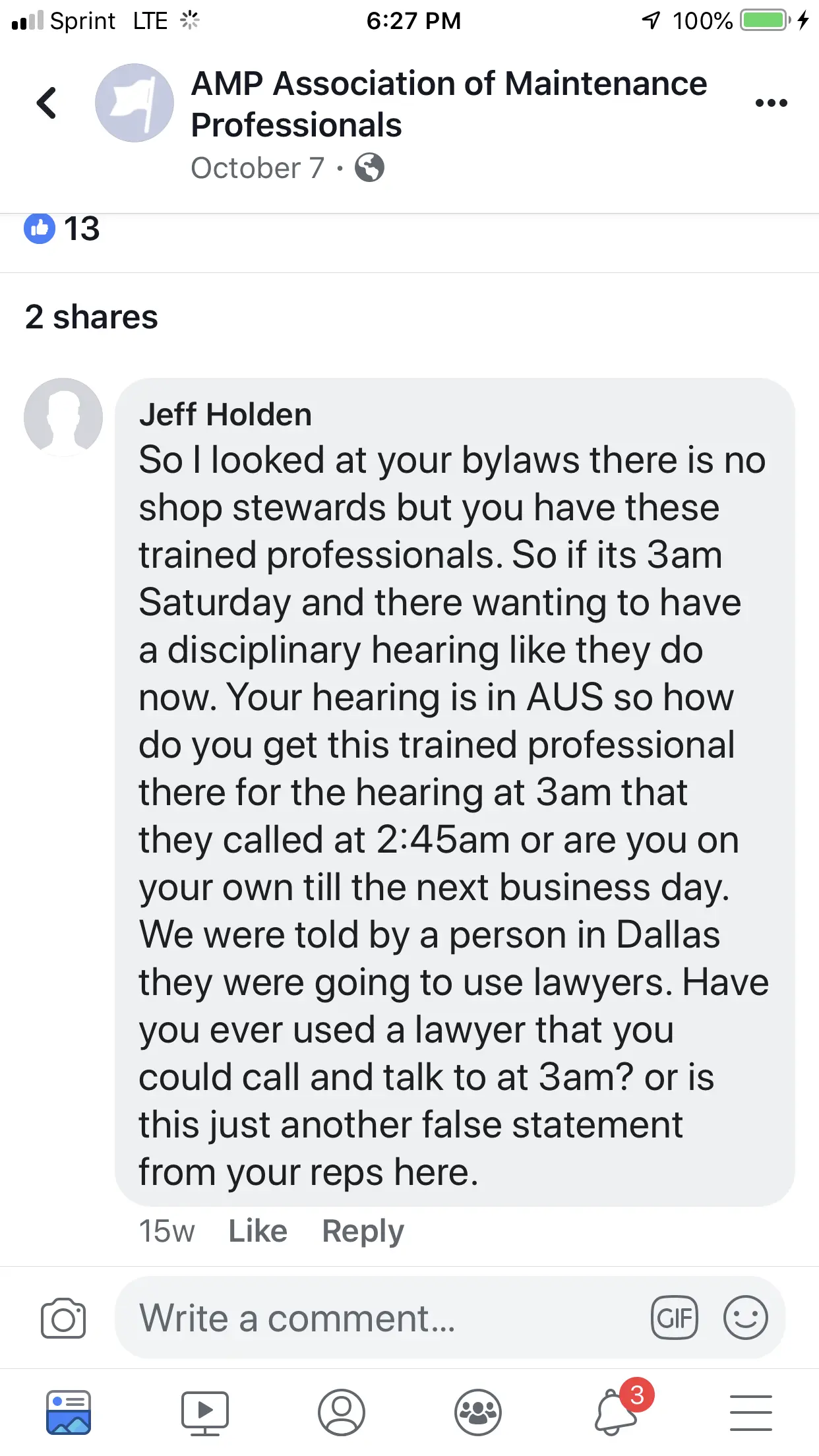 I am a supporter just like AMFA. But you came out of fear of possibly losing your union, all I can do is admit I am not running it. Enough cards were not signed or not enough interest. I have no problem with that.