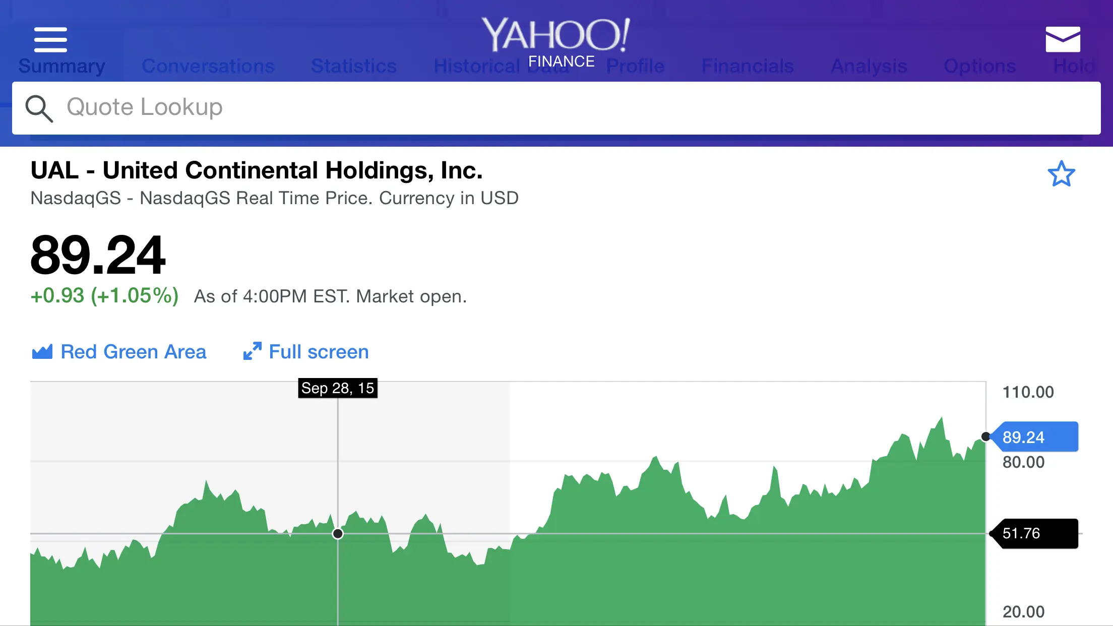 driver here check this out. September 28, 2015 is the date that Oscar Munoz took over as CEO of UAL. First check out the stock performance and where it stands today for UAL.