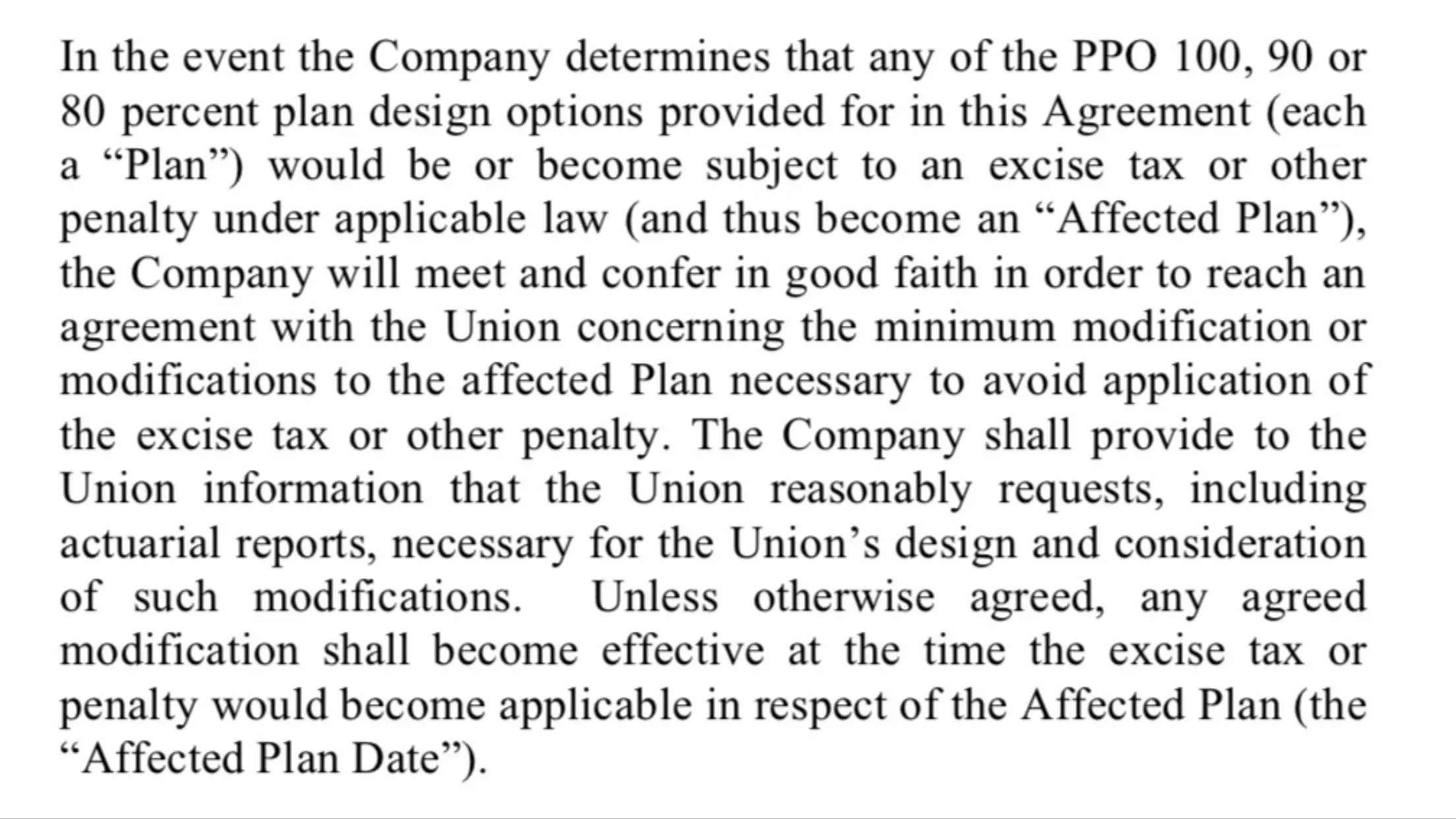 Weez, you cant read. Who cares?.It will go to arbitration. If the arbitrator balks then the company has the right to terminate the plans and figure out a newbie. If the arbitrator completely balks then the company has additional avenues. Any union rights CEASE after the arbitrator is on the case.“Unless otherwise agreed, any “””AGREED””” modification”