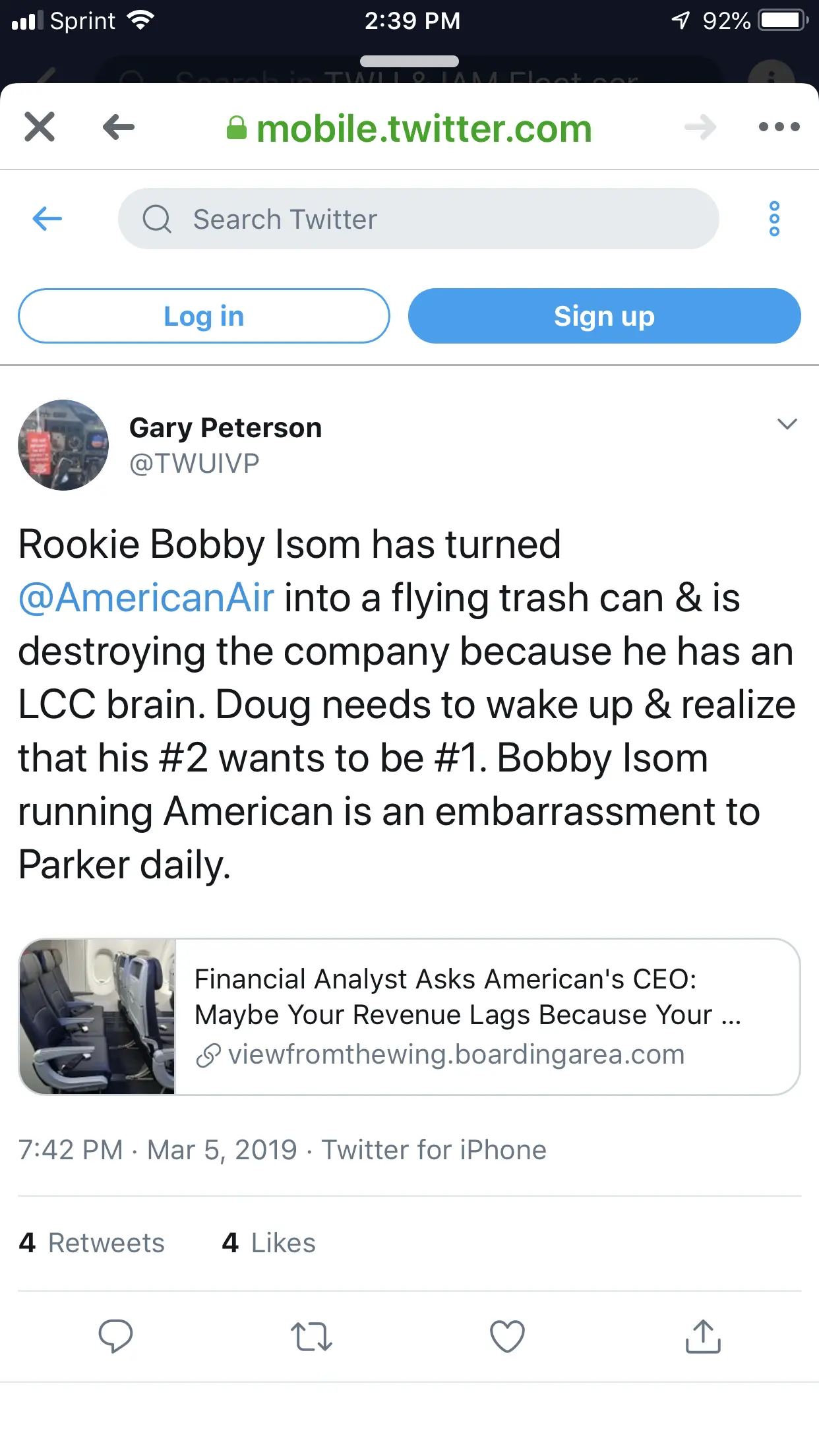 Thats one thing the other is your union president saying hes doing to get parkersj job which im sure you dont believe even though you wont admit itIsom is doing a terrible job and you know it Al. Maybe you’re just not paying attention to the performance of the Airline?