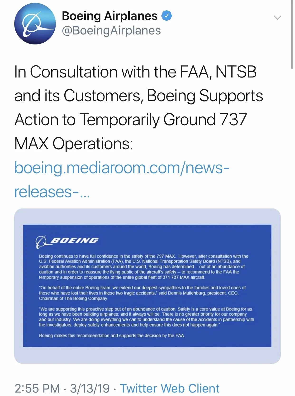 I'm glad to see he took the initiative, especially, since his Government Shutdowns are said to have delayed the software fix needed to prevent the (alleged) control issues...“””GROUNDED”””