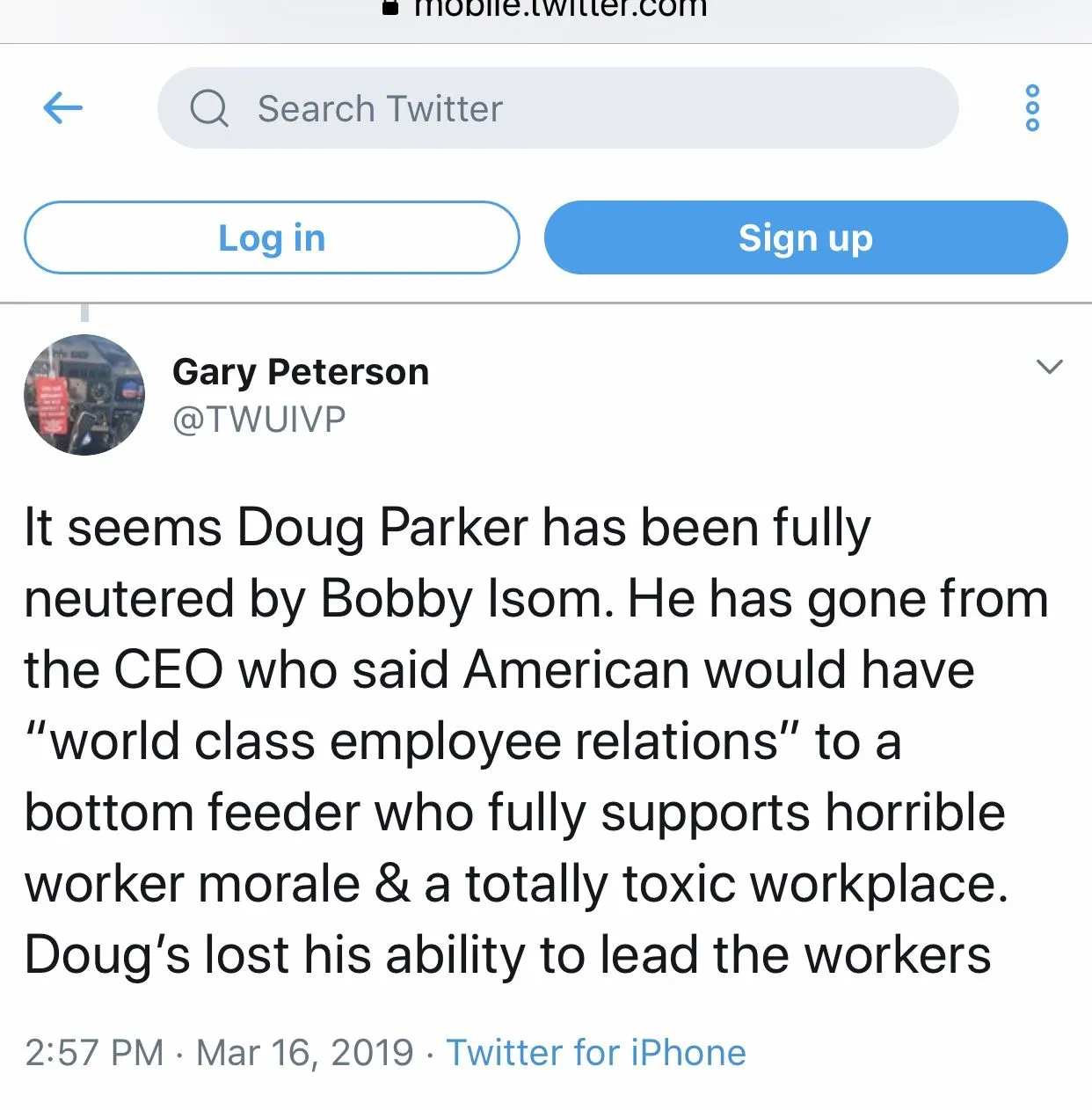 Most workers hate their union but are fearful. Consider the LAA mechanics and LUS mechanics, both groups are incredibly abused by their union but have syndromes. They have zero voice.Amen. Now if more rank and file people would remember that. labor (collectively) would be in a much better place.