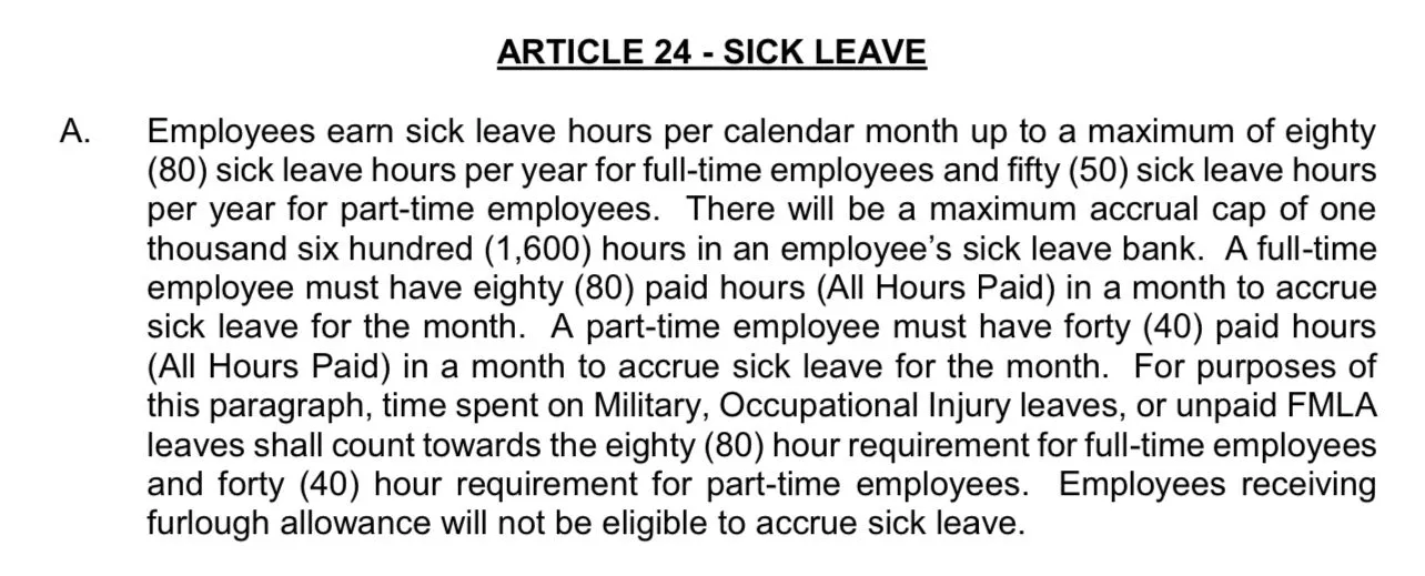 🙂 FYI our AMFA sick policy is in article 13 along with OTJI"s, NOT article 24 which is 15 years old language there skippy.