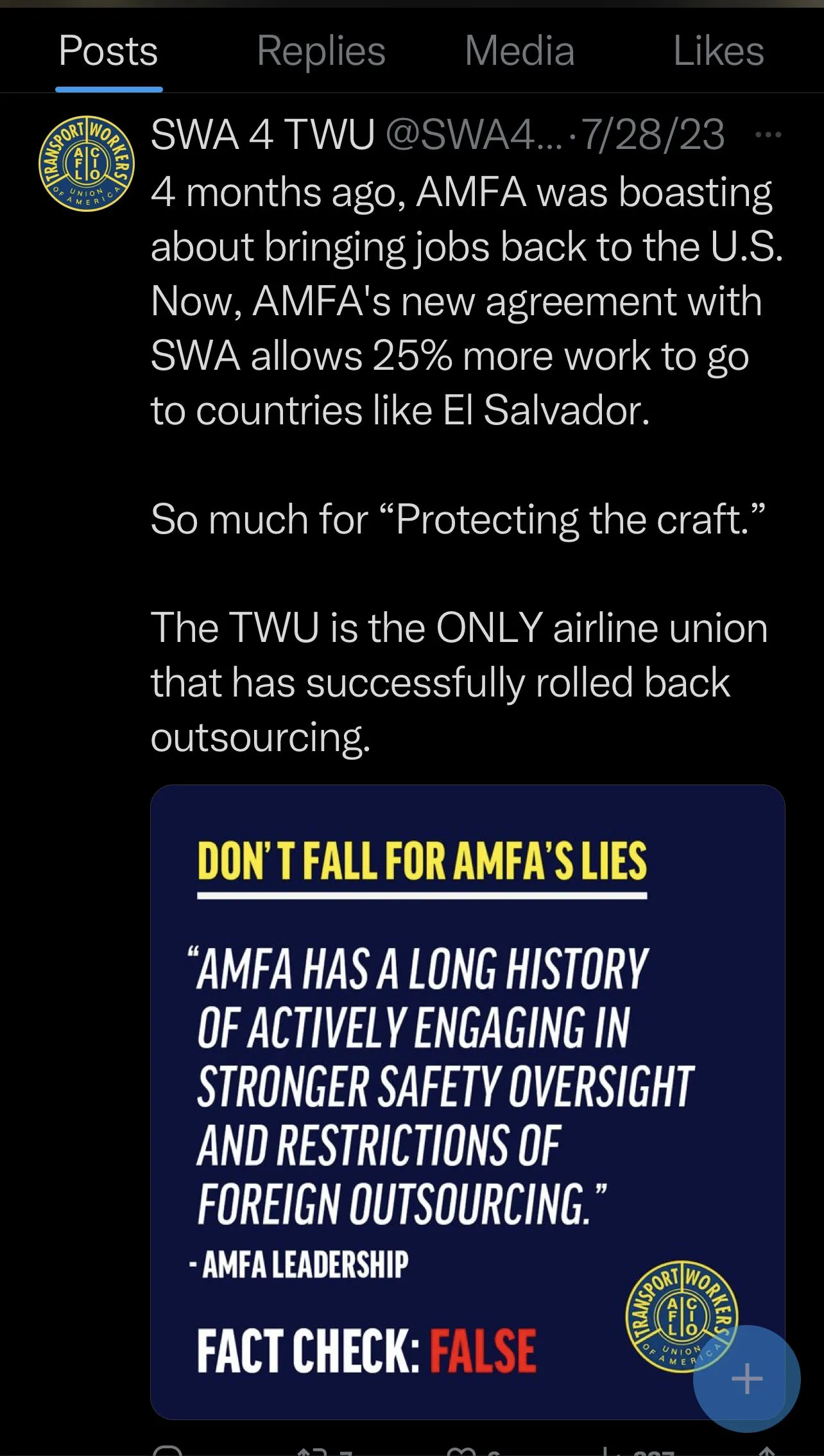 Nice to see AMFA and L3 in talks about adding maint for the new 330's. Always nice to see maint growth and expansion...