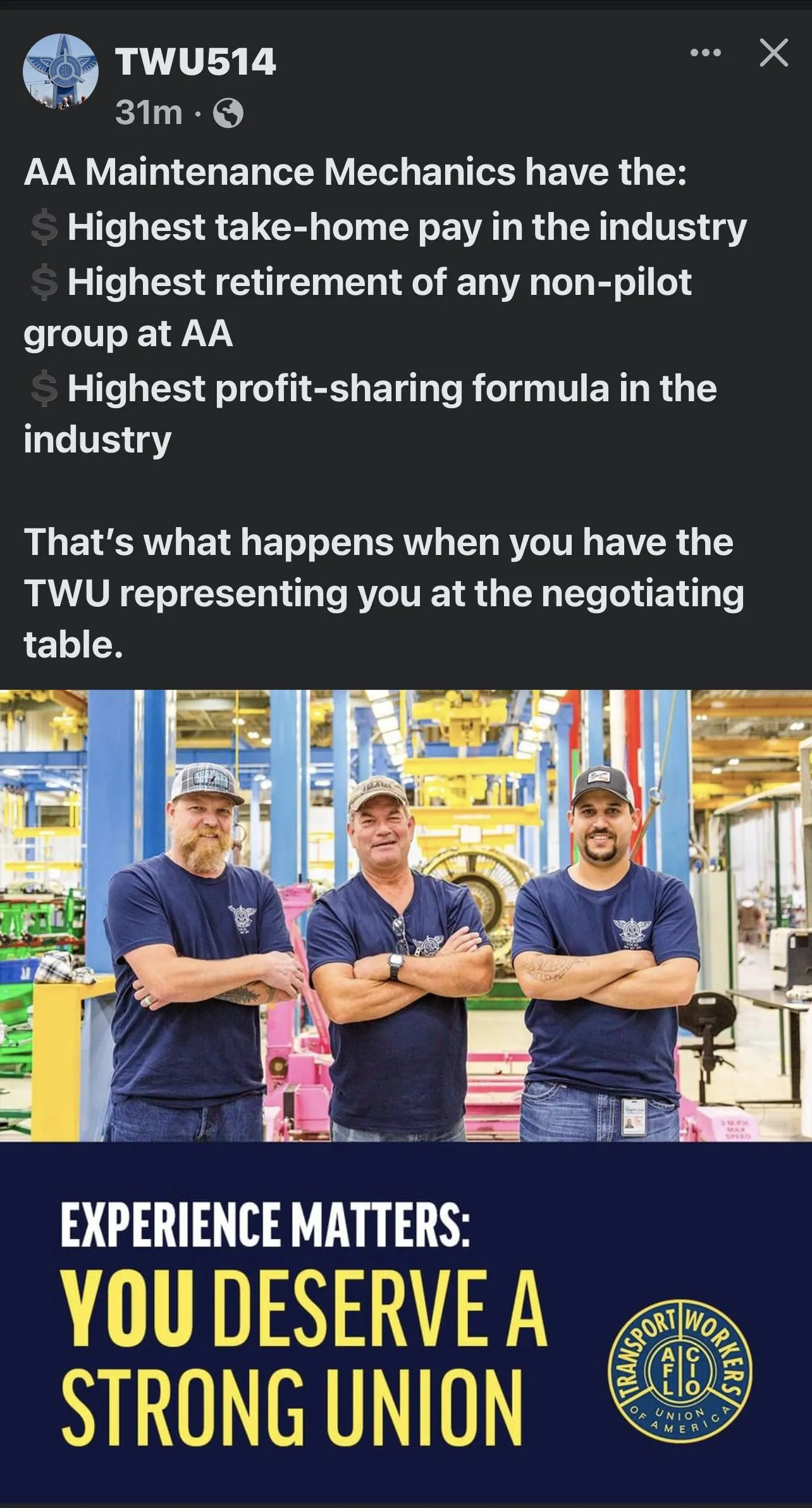 Ironic its a picture of your engine shop that can be complete outsourced per your CBA as soon as American parks the last CFM56 powered jet.........