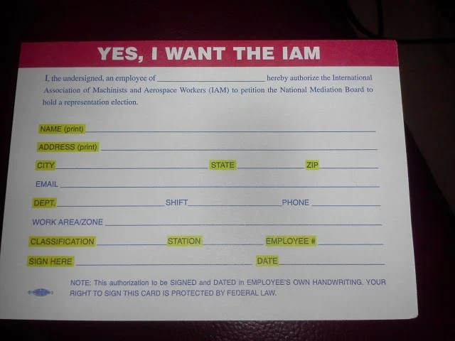 I received five authorization card from the IAM by mail on Friday, what's going on here? It was my understanding that the IAM and the TWU had some kind of joint deal to represent us. With the admission from the Teamsters and TWU that they were in collusion and all the back stabbing... my head is just spinning, can someone give me some answers? What’s happening here?