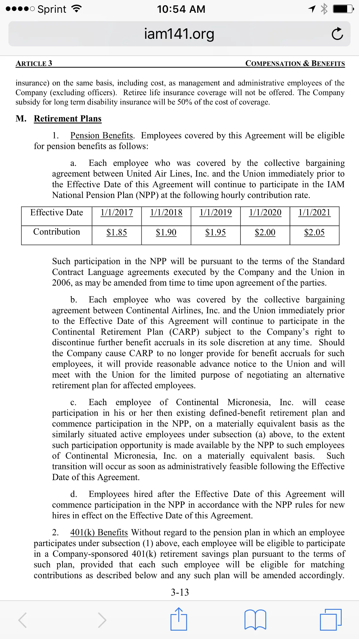 We won't get 10% unless the IAM gets about $3 per hour into their pension plan. That would be a huge boost from current levels and unlike the 401K, it would be to all IAM members.