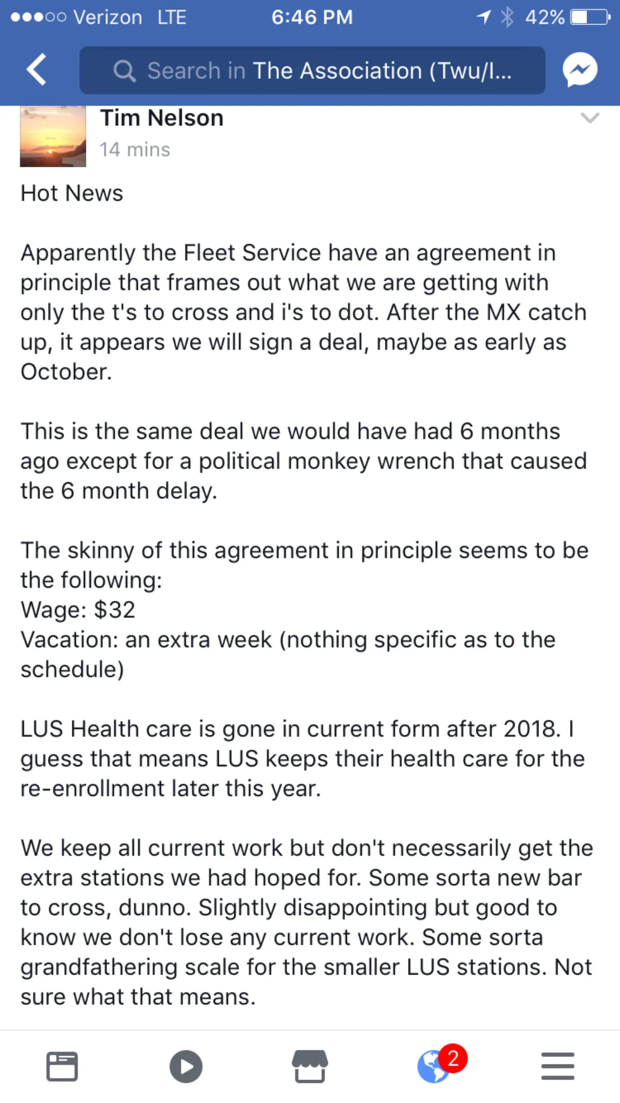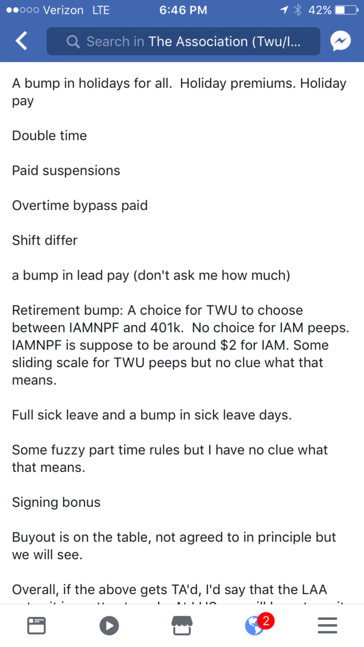 It is what it is. You dont have to accept it. The individual who sent it is credible to me and i believe it. I wasnt too happy to say the least and i doubt many lus will be but thats only my opinion. I was told i lost my lus health care for 2018 but it will be made up with a $32 and extra iamnpf. Why the F do i have to get a pay raise to bridge a concession? Excuse me, but thats not a pay raise when i gotta pay for it. And sorry, but liwuidating my health care into the iamfpf is offensive when i know the pension trustees will have to take it and cut my pension to bail out billions in liabilities again.