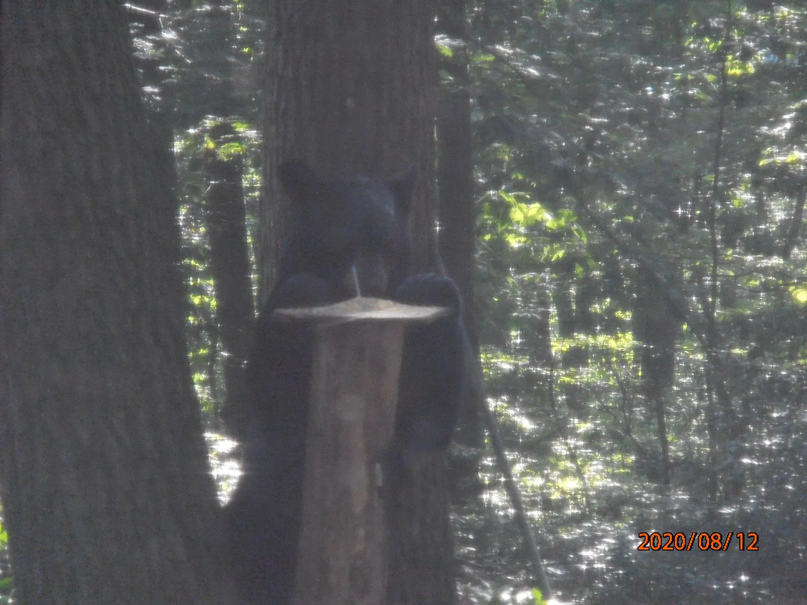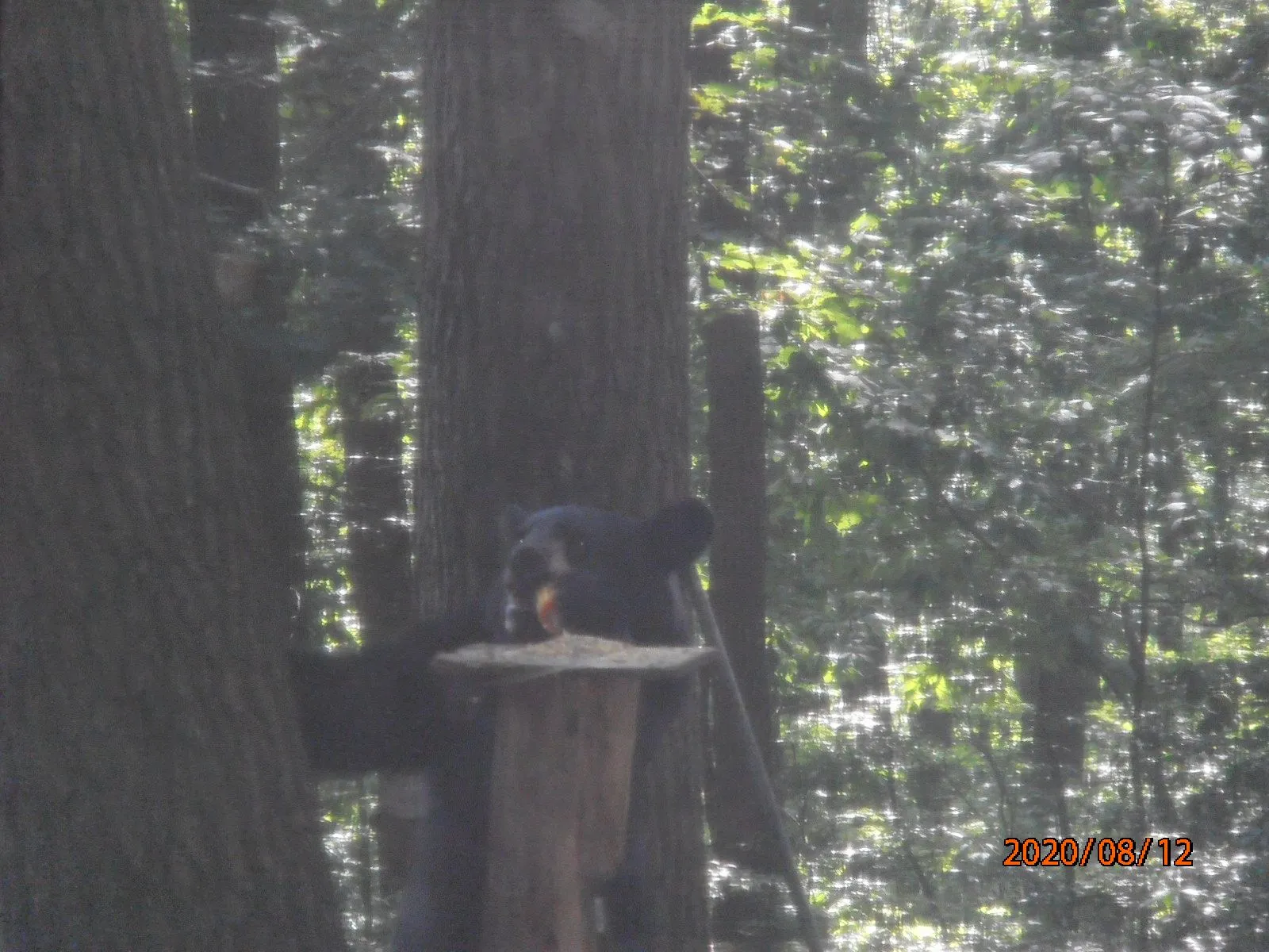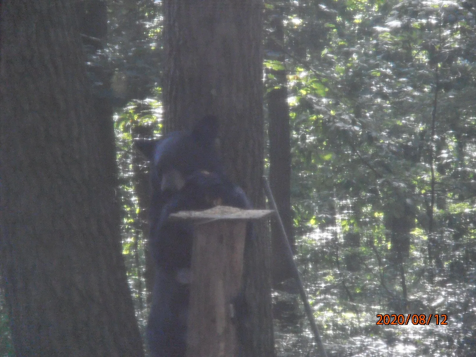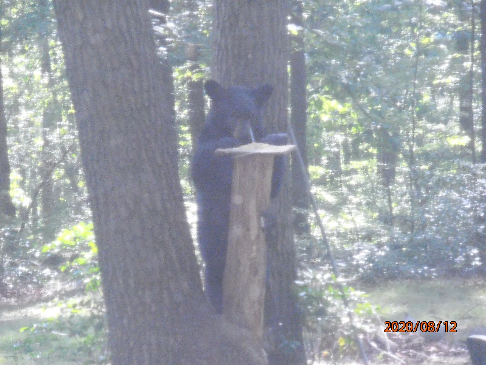 Nice show here in the 'Burgh, called Pittsburgh Today Live (PTL). Feeding squirrels has been a big feature on the show with all kinds of squirrel picnic tables, snazzy feeders and so on. We feed them too, at home and at our retreat. I made a nail thingy and drilled a # 35 bag of eared corn so they fit over a nail post.She feeds them eared corn, bird seed, peanuts......guess who else showed up?
