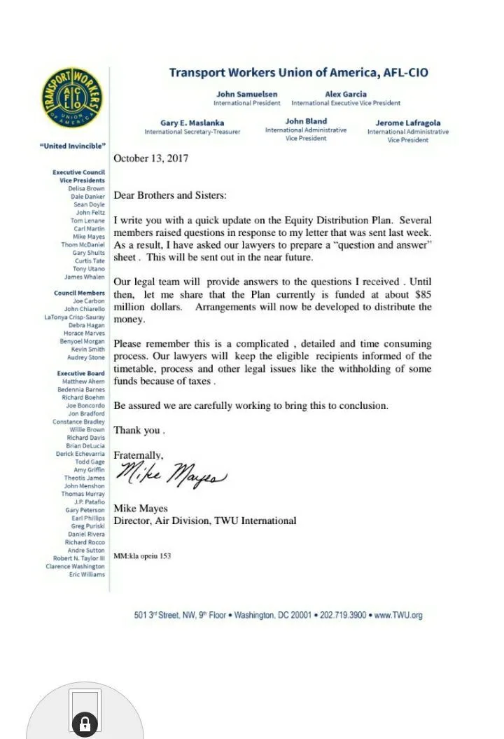Oh and if anyone thinks the TWU is going to syphon some of the money for the International coffers, you need to “learn to read” the DOL LM2’s.