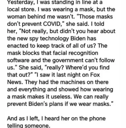 Don't know about Biden using facial recog to track people, but various law enforcement entities do. And masks do make it harder.