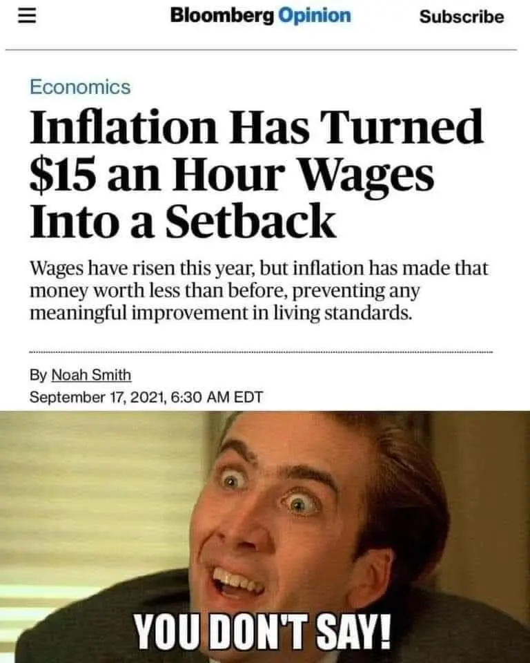 Can't have a smartphone, the full Showtime package, PS8 and all the other bells and whistles on $15.00 let alone $9.36.Minimum wage should be nowhere near $15 an hour according to the CPI Inflation Calculator provided by the U.S. BUREAU OF LABOR STATISTICS.