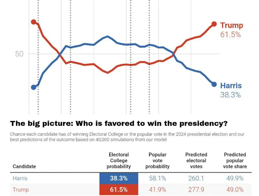 Nate Silver over at 538 is still predicting Trump comes up short.