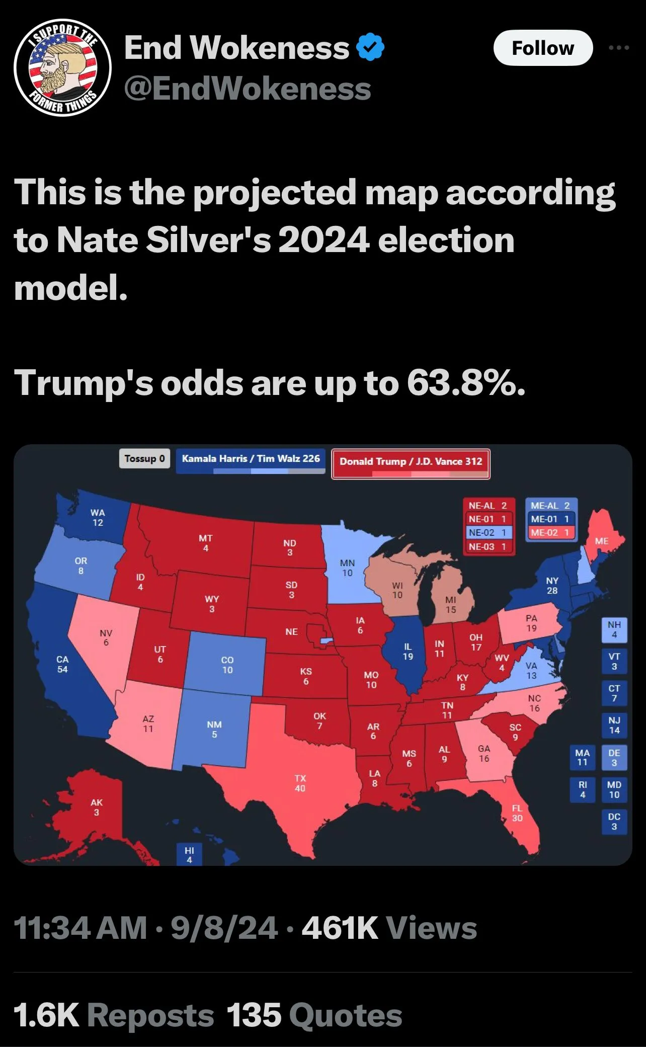 My God man........that's left wing, Trump hating, ABC owned, Nate Silver and his 538 polling group. Officially approved left wing source.