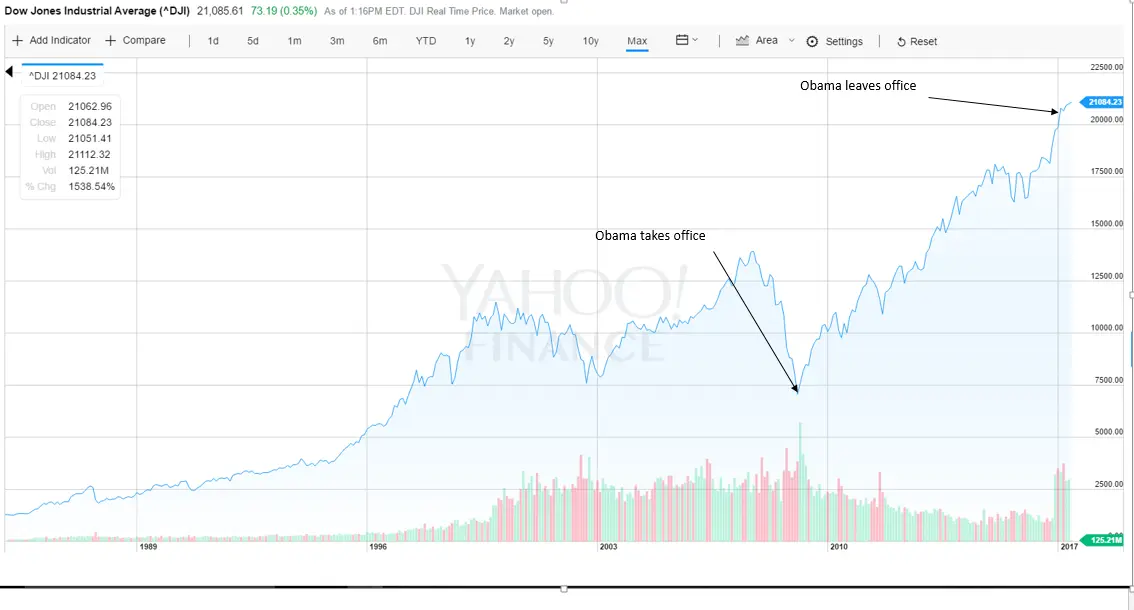 When was the Dow Jones Industrial average at "an all-time low"? The bolded part of your post implies that it was on inauguration day, Jan 20, 2017. I'm confident that you're not that stupid. I'm confident that nobody in the USA who knows how to log on to a message board like this one is that stupid. So what drives you (and other Trump cheerleaders) to say such outlandish things? Are you trying to emulate Trump?