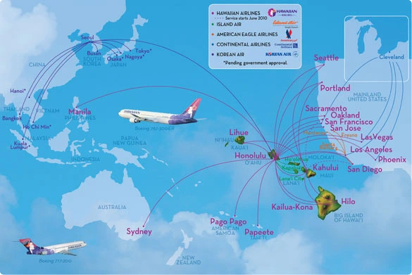 Think Hawaiian Airlines they have Pacific expansion under way and are expanding the fleet with New AirBus A330's and a Mix of 767 they have the equipment to make us more of a global airline.