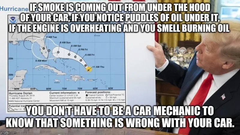 I don't know if you have ever watched hurricanes. But they usually develop off the coast of Africa and when they do, a potential course is plotted. And you know something? Alabama may well have been in that predicted path when the storm was still 4,000 miles from the US. But the weather service updates those maps as the storm moves. Even the damn map that Trump modified with a SHARPIE had the affected area in white (not black sharpie). And it didn't include Alabama. Here's something funny.....when Hurricane Katrina hit New Orleans, we got rains from it here in Kansas City...just like Alabama most likely would have had some rain from Dorian....but we were never warned that we were in the path of Katrina.