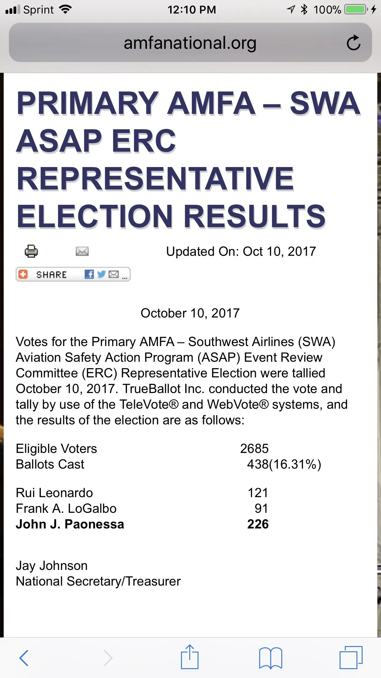 I voted for John because I work with him and know he's a very capable representative. Most don't know him, don't know what ASAP is, and will never need his service. I'm of the opinion that most believe they we pay dues to hire representatives to oversee contract negotiations, monitor company violations, and conduct day to day union business recognizing unionism is not a religion but a means to promote our professions for better pay, benefits, and working conditions. Certainly voting on a contract and representatives ranks high and commands more participation but otherwise most want to spend time with family, friends, and hobby's.